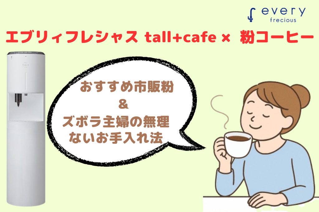 この記事では、エブリィフレシャス tall+cafeでおすすめの粉コーヒーや、掃除のことをまとめてみました。