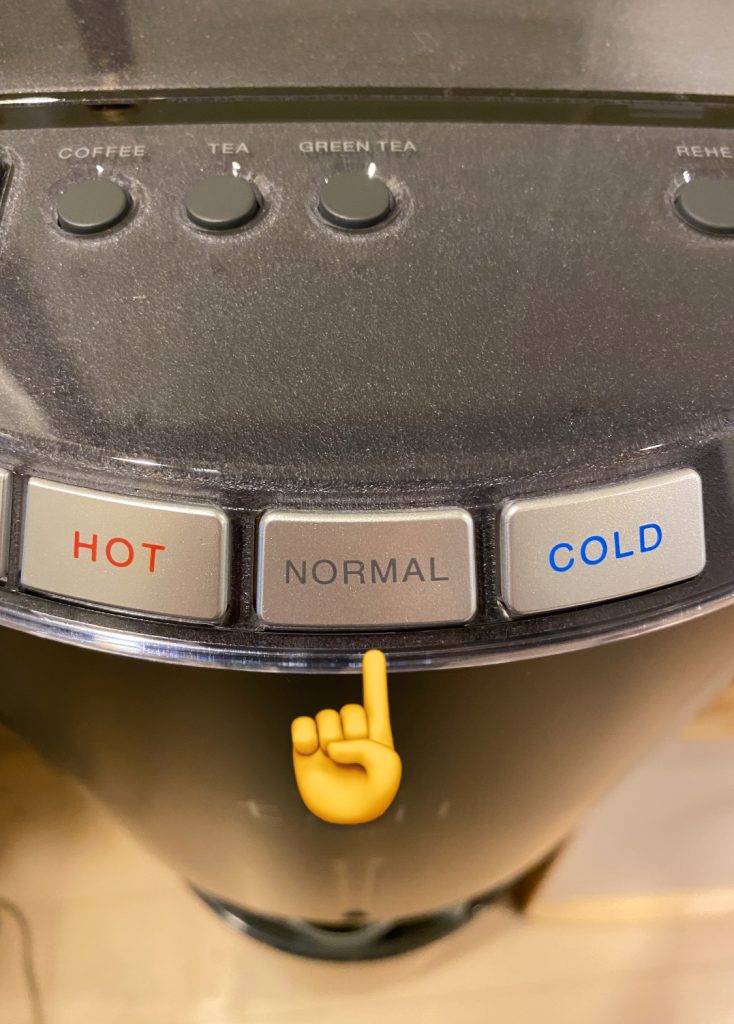 1.NORMALボタンをお水がなくなるまで押し続けます。