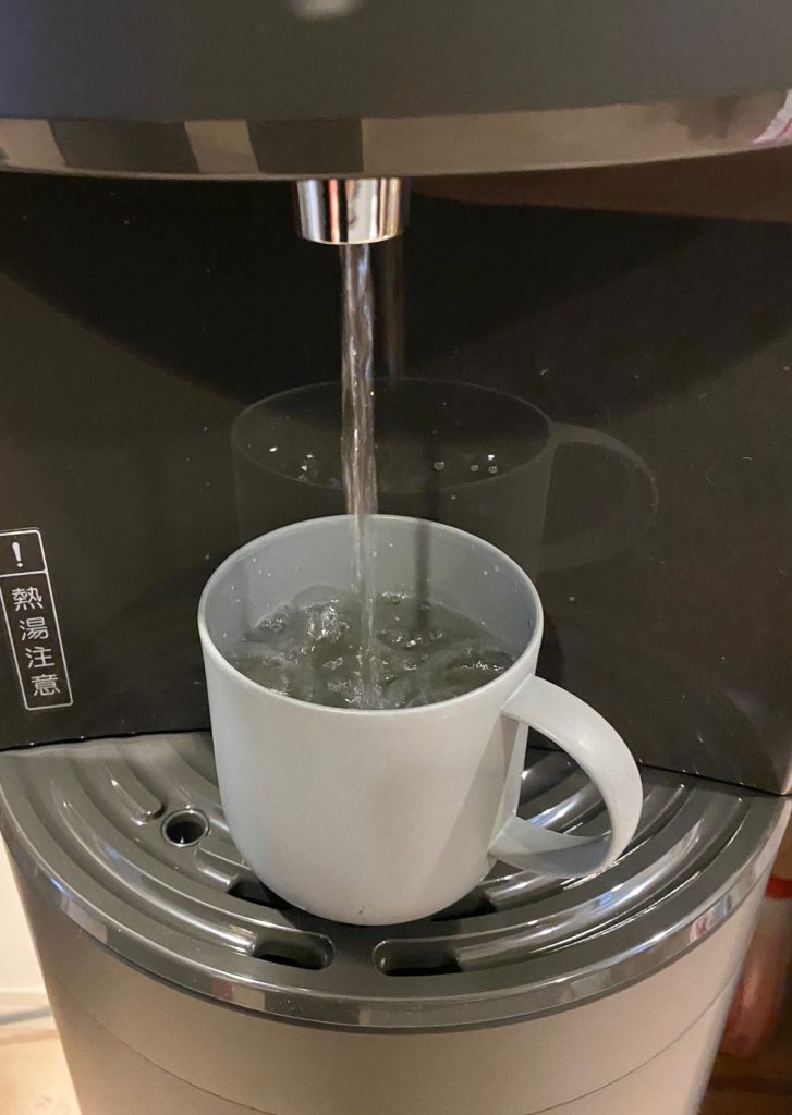 ボタンを押すと「ウィーン」と軽く音がして、お水やお湯が出てきます。