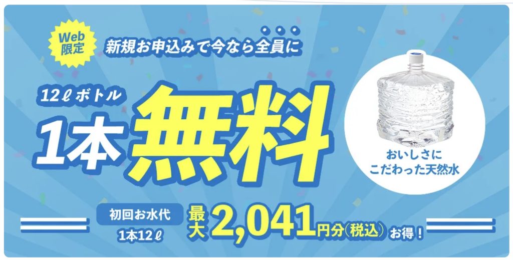 新規で申し込む人全員→12Lボトルが1本もらえます。